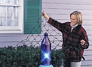 Holiday net lights from Christmas Lights, Etc., are available in a variety of colored bulbs and wiring. The net pictured here is 4 feet x 6 feet and has a 150 bulb count. Lead length is 24 inches; tail length is 8 inches. The lights last an average of 3,000 hours.