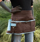 and loops to keep essential garden and craft tools within arm’s reach. It features chocolate brown heavy-duty canvas with sky-blue trim.