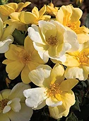 Sunny Knock Out from Conard-Pyle is the only fragrant member in The Knock Out Family of Roses. It has a slightly more compact and upright habit than The Knock Out Rose with bright yellow flowers that fade quickly to a pastel cream color. The yellow color stays more intense during cooler times of the year. The dark, semi-glossy foliage contrasts nicely with the bright blooms.