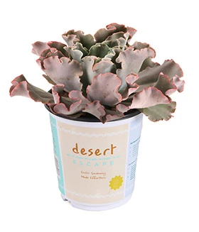 Echeveria is a low border plant and comes in shades of green, silver, and gray. The plant is part of the new Desert Escapes Collection and shows off fantastic texture in containers or landscapes. Available in several varieties.