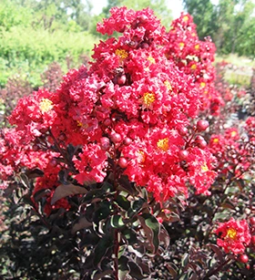 Black Diamond is a revolutionary new series of crapemyrtles with black foliage and five flower colors to choose from, including ‘Crimson Red,’ pictured here. The black foliage emerges in early spring and lasts until leaves drop at the first hard frost. Planted in full sun, plants hold their stunning dark foliage color over the entire growing season, and bloom late spring through late fall. Plants are 10 to 12 feet tall, so the semi-dwarf, versatile shrubs are perfect for urban landscapes, small spaces and containers. Black Diamond grows differently depending on USDA Hardiness Zone: zones 2-5, annual; zone 6, perennial; zone 7-9, deciduous shrub/small tree.