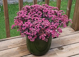 ‘Dazzleberry’ is a new groundcover that only grows to 8 inches tall by 18 inches wide, but has huge 9 inch flower heads held above disease-free dusky-blue foliage. Blooms summer to fall for over seven weeks of non-fading color. The perennial is part of the new SunSparkler series of sedums.