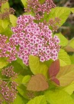 Double Play spiraea have both colorful flowers and colorful foliage. Massive pink flowers of a size never seen before adorn bright yellow foliage. This plant has the largest flowers we've every seen on a spiraea. Foliage glows orange in the spring. Adaptable and easy to grow, this is a great plant for landscaping.