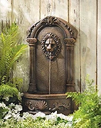 Dropshipproductsource.com markets the Lion Wall Fountain. Inspired by European palace decorations, this faux stone fountain instantly creates an elegant impression. The graceful curves and classic lion's head theme add timeless beauty to your customers' surroundings.