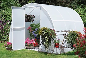 The Early Bloomer Greenhouse is a functional and durable starter greenhouse kit for anyone who wants to enjoy year-round growing. Measuring 8 feet wide and 8 feet long, the Early Bloomer Greenhouse offers plenty of room to grow everything from heirloom tomatoes to salad greens, and it fits nicely in even small yards. The center height of 6 feet 3 inches is ideal for tall plants or even small fruit trees. This greenhouse features a Solexx brand corrugated plastic covering that diffuses light to create ideal inside growing conditions and prevent leaf burn.