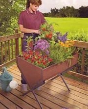 The Elevated Garden Kit from Easy Gardener lets the consumer garden without bending or kneeling. It's ideal for senior citizens, and it is wheelchair accessible. The unique "V-shaped" design allows for growing deep rooted vegetables on the patio or deck.