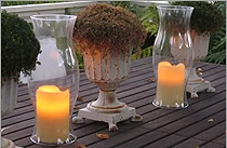 Flameless candles are an ideal to decorate the garden or patio without the liability of a fire. Enjoy Lighting Flameless Candles are a great option. They offer 3 LED lighting technology, a built-in timer and a computer chip to allow for a longer battery life.