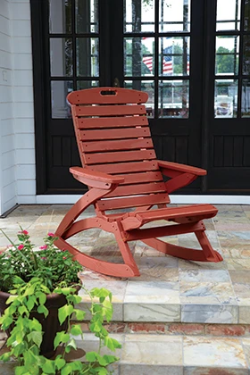 This colorful outdoor rocker is hand-crafted of pressure treated pine or Premium Uwharrie Polymer; both warranted for a lifetime. The “Epic Collection” consists of a mix of pieces including chairs, settees, ottomans, side tables and much more. It is available in 29 finishes. Made in the USA.
