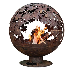Create a cozy patio setting as you watch the flames dance around the blowing leaves scene from this unique fire globe. Laser cut from 3mm thick steel, making them sturdy and long lasting. Two-piece design, with the base and globe separating for easy cleanup and transport. 24-inch Diameter.