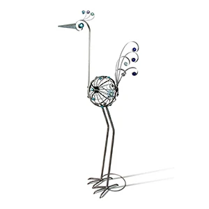 These birds are hand-crafted, hand-painted and powder coasted with glass beads. Perfect for the store or a garden, there are many sizes and shapes available. New for 2012 are the bronze, pewter and turquoise finishes. No tools are required for assembly.