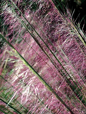 Muhlenbergia capillaris Fast Forward begins to flower in August (late July in warm climates),earlier than most others in the species. Glowing orbs of delicate sunlit purple flowers dance over symmetrical, compact mounds of fine flat foliage. It prefers sun to part shade and grows 24 to 30 inches tall (4 inches in flower). It is hardy to Zones 6 to 10.