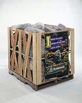 Featherock garden boulders are available in attractive wooden display boxes that can be double stacked for shipping and storage, and easily moved by forklift or pallet jack. The displays are designed for today’s quick impulse, no-assist sale. The customer selects and carts boulders to the check out counter. The boulders can be shaped and carved with simple hand-tools. Customers can transform a boulder into a trickling waterfall, a bubbling bird-bath, or boulders can be drilled and wired for landscape lighting. Featherock is real volcanic rock that comes from California’s High Sierras.