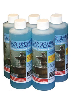 Finally, a single water treatment product that aids in reducing the effects of organic and inorganic contamination in water. Treat water seriously and preserve your fountain finish with Fiore Stone Water Clarifier. Fiore Stone Water Clarifier's innovative formulation imparts hydrophilic properties to minerals present in water, thereby reducing mineral precipitation, build-up and scaling. A biologically active form of copper ion (Cu++), the release of its active ingredient is controlled by demand (such as calcium and other minerals) instead of by water conditions. Fiore Stone Water Clarifier, when used as directed, is safe for pets, birds and non-aquatic plants.