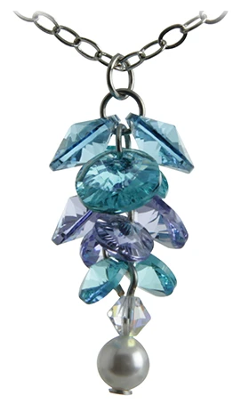 This design, part of Woodstock Chimes new Garden Reflections collection, symbolizes the variance of beautiful blues hues found in the Forget Me Not flower family. The style also features a clear crystal at its end, set above a white pearl. Garden Reflections is comprised of 10 new pieces in five different colorways, all featuring Swarovski Elements Crystals.The necklaces will retail for $30 each and the earrings $35 per pair. These items, and more than 30 other new products, will be available at a variety of winter markets, including Atlanta, Dallas, and Las Vegas. Each necklace crystal cascade charm measures 1.25 inches in overall length, and comes with a platinum plated brass chain, measuring 18 inches in overall length. The earrings’ crystal accents measure 0.75 inches in overall length. All come gift-ready in a beautiful jewelry box wrapped with a four color labeled sleeve.