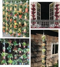 The Plantominium is a new way to garden vertically. It unfurls from a small envelope into a 5-foot-tall condominium for plants. It will hold six 4.5-inch round, 4-inch square (with beveled corners) or 3.5-inch square pots in thick polyethylene loops. The Plantemonium hangs from included s-hooks and screw eyes and rotates 360 degrees with the included swivel.