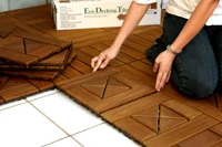 Interlocking modular tiles that snap together Molded high-density propylene base Made from tropical Ipe hardwood lumber Requires no nails, adhesives, sanding, staining, cement or anchoring Misc Garden Products