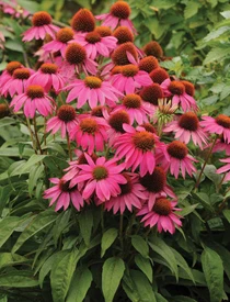 Green Leaf Plants markets Echinacea purpurea PowWow™ Wildberry. It features large, dark-pink flowers on green foliage, blooming during the summer. It grows to 20 inches tall and attracts butterflies. It can be used as a cut flower and is deer-resistant. USDA Hardiness Zones: 3-9.