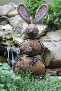 Green Piece Wire Art markets a new line, “Set in Stone,” which features an array of cute characters – like this rabbit – made from hand-painted metal in a faux stone setting. The line also includes these characters: Chick, Crab, Crane, Crown Bird, Flamingo, Frog Prince, Helirockter, Horse, Pearock, Reindeer, Rockapilar, Rooster and Snail Rider.