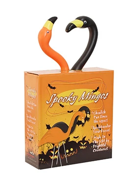 One of the most popular lawn and garden accessories from the 1950s is now available from Bloem, with a Halloween twist. These Spooky Flamingos are made using quality plastic for all-weather durability. The color won’t fade, and the galvanized steel legs won’t rust, so these Spooky Flamingos will look good year after year, according to Bloem Living. Two classic poses are included: head up (27 inches) and head down (24 inches). Made in the USA.