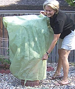 The Large Frost Protek Plant Cover from Hill Street Home Inc. is ideal for container plantings (including barrel size), a grouping of containter plantings, window boxes and small shrubs. It features a round shape and covers up to 42 inches in height. The width of the drawstring opening at the bottom is 55 inches.