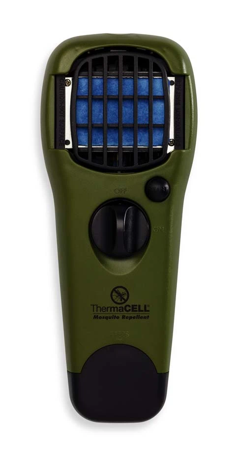 The newly designed handheld ThermaCELL appliance keeps bugs away up to 15 feet. The system is 98 percent effective against mosquitoes and other biting insects. The butane cartridge heats a mat that releases allethrin, a synthetic copy of the natural insect repellent found in chrysanthemums. Each mat contains enough repellent for four hours of protection.