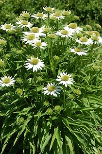 Echinacea x Snow Cone is the newest hybrid available from Intrinsic Perennial Gardens. Bright white petals surround chartreuse cones and grow 24 inches tall and wide. The hybrid is easy to grow and hardy. It grows best in average to well-drained soil in full sun.