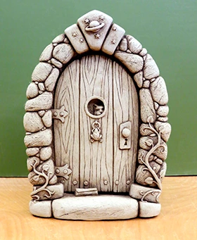 Created by Ohio sculptor George Carruth, this new fairy door called "Knock, Knock" brings added whimsy to fairy gardens. Made of hand-cast stone material, “Knock, Knock” is available in five patina colors – natural, aged stone (shown) designer white, green and terra cotta. The door is weather proof and measures 8 inches by 10.5 inches and weighs 6 pounds. Suggested retail: $45.