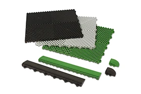 Made from a special formulation of recycled tires and polypropylene resin, this new interlocking system is designed to be a long-lasting recycled surface system that provides safe and comfortable surfaces for production areas, benches, supply rooms, event floors, display pads, walkways, entrance areas and more.