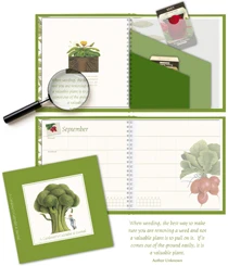 Filled with beautiful fruit, flower and vegetable illustrations, the Linnea Design Garden Journal is both a valuable tool and lovely keepsake for any gardener. Plan plantings and pruning, record your bounty and blooms and compare the current year with those past. Monthly charts allow for recording of daily temperatures and a handy grid makes laying out your garden design a breeze. In addition, three bound-in envelopes are perfect for holding plant tags and snapshots from the year. The Linnea Garden Journal can be started any month and is not year specific. Retail $19.00 (This 56-page hardback book measures 9.75” x 9.25”)