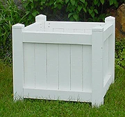 The Maine Bucket Company markets the 24-inch Cedar Cube Planter Painted White. Part of the Maine Bucket Company's line of quality wood products, this planter fits nicely in the yard or on the deck. The company offers a wide range of cedar planters, benches and lattice cominations.