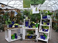 The Pine Ladder Display Stand from The Maine Bucket Company is an ideal way to make colorful decorative items and plants "snap" in the plant yard. The ladder measures 25.5 inches W x 61 inches H x 26.75 inches D. This white model can be used with other like-colored merchandisers to create vivid displays in the store and outside.