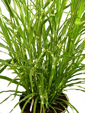 Miscanthus sinensis 'Nova', a selection of 'Zebrinus', has yellow horizontal bands and a columnar habit. ‘Nova’ is slightly more compact than other 'Zebrinus' cultivars, forming upright clumps 4 to 5 inches tall with flower plumes, adding an additional 1 to 2 feet in late summer. Foliage will brown after first frost but flower plumes persist well into winter providing good winter interest. 'Nova' is a versatile ornamental grass and a good accent or specimen plant. Also, effective in groups, massed or as a screen.