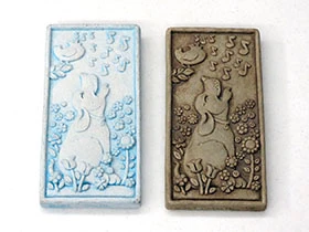 This hand-cast stone plaque of a hound and his bird friend singing in the morning comes in aged and new blue finishes with a hook on back for hanging indoors or outside. Measures 2.75 inches by 5.5 inches and weighs 1 pound. Suggested Retail $27.50.