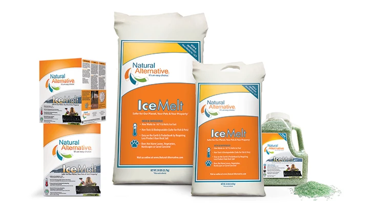 Natural Alternative Ice Melt is a non-toxic and biodegradable blend of ingredients designed to be hard on ice and snow yet easy on sidewalks, vegetation and the environment. It melts ice to -16°F, is not toxic to fish and it is safer for pets. It is listed with the Pacific Northwest Snowfighters (PNS) for reduced metal corrosion. It does not become slippery when wet and does not leave a greasy residue to track in on floors. Apply the product prior to snow storms to create a brine. As soon as it comes into contact with moisture, it will minimize ice and snow accumulations and thawing and refreezing cycles.