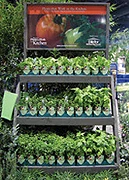 Novalis' Plants that Work in the Kitchen program is offered with a full array of in-store packaging and signage for easy shopping and attractive display. Kitchen branded pots sport tag formats for 4-inch, 17-centimeter, 19-centimeter, and 3-gallon container sizes. The 4-inch line comes with an easy-carry retail 6-pack tray and handle. Bench Systems has developed a modular bench option for the 4-inch herb line. Co-branded POP signage is available, from 5-inch x 7-inch bench cards to extra large format banners, to enhance the Plants that Work in the Kitchen destination within the garden center.