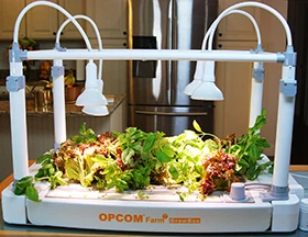 The GrowBox and GrowWall models couple OPCOM’s soil-free, hydroponic growing technology with proprietary color LED lighting tuned for optimal plant growth. These next-generation indoor gardens enable 25 percent faster growth cycles, and eliminate the challenges of weeding, pests and weather normally associated with outdoor gardening.