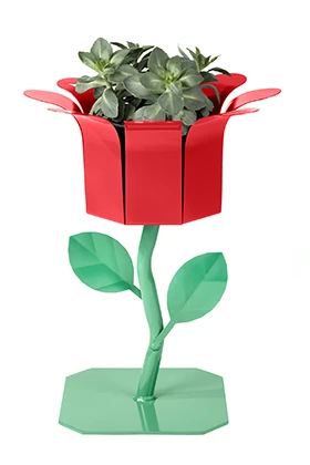 The 8-inch Flower-shaped Garden Planter is made from steel and painted with eco-friendly, water-based automotive paint. The vibrant, whimsical planters are sturdy and weather resistant. Available in more than 14 paints, choose a color to complement your outdoor garden décor. The Pearhut garden planters are handcrafted in the USA. Drainage holes and plant liner included.