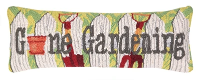 The Gone Gardening hook pillow is hand-hooked in China and measures 9 by 26 inches. The suggested retail price for the pillow is $24.