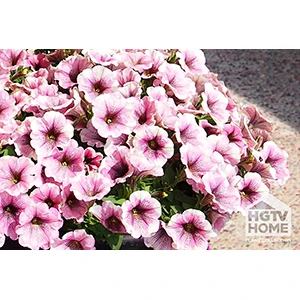 The HGTV HOME Plant Collection is introducing an exclusive line of Pop-N-Polish petunias into the Expressions Annuals Collection for 2013. Sweetunia White Merlot, shown here, from the HGTV HOME Expressions Annuals Collection will be sold in quarts, gallons, hanging baskets, and as part of the Big & Bold Plush Pink mix. This is a mounding, semi-trailing petunia with compact to medium vigor, making it perfect for hanging baskets and container mixes.