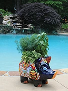 Pottery Express offers a wide range of Talavera Pottery, including this Pig Planter. Talavera is popular in many parts of the world and is one of the more festive decorative accents. This Pig Planter is "at home" anywhere around the home and will surely be a conversation piece wherever it is placed.