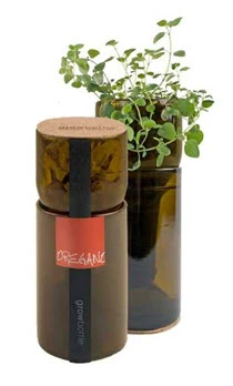 Grow Bottles from Potting Shed Creations are upcycled hydrogardens than are hand-crafted from recycled restaurant wine bottles. They combine smart designs and functionality with a clean aesthetic that is respectful of the earth's resources. Using simple hydroponics, the durable glass vessels grow fresh culinary herbs indoor year-round and are reuseable.