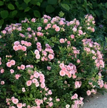 Oso Happy Petit Pink is a new shrub rose from Proven Winners ColorChoice. The sprays of petite, bubble gum pink flowers and small green leaves are reminiscent of a miniature rose, but this variety is comparable to 'The Fairy' in its mature size. This shrub rose boasts a very refined mound with a strong continuous bloom and good disease resistance. All of these factors add up to a great rose for the shrub or perennial border.