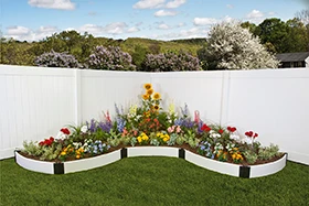 The Frame It All Classic White raised garden beds combine functionality and elegance. The ornamental timbers of the Classic White bed can be combined to create any shape, dimension or height. The 8” straight and curved Classic White timbers are easy to assemble -- simply snap each joint over the ends of the timbers -- no tools or screws required. The beds are scratch-proof and resistant to rotting, splintering and insect infestation and carry a five-year warranty.
