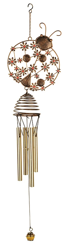The Rustic Elements Ladybug Flower Chime from Red Carpet Studios is part of a charming six-model line of garden chimes. The Ladybug Flower Chime features colorful flower accents, a copper finish and a glass marble accent and will be a conversation piece in any garden or landscape.