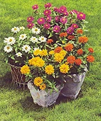 Profusion Double zinnias from Sakata have double flowers on compact, well-branched plants. Available plants include Double Cherry, Double Fire, Double Golden, Double White and Double Mix.