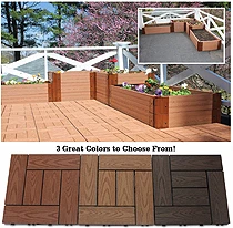 Scenery Solutions' new Interlocking Deck Tiles snap together in an instant to create a lustrous, no-splinter wood grain finish over a deck, patio, terrace or garden path. These composite wood grain deck tiles are tough enough to withstand the roughest treatment and come in three colors. Scenery Solutions markets a variety of clever home solution products, from raised bed gardens to landscape edging.
