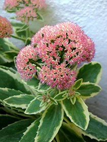 This sedum forms a spectacularly bushy mound of serrated succulent green leaves with outstanding leaf margins that begin golden-yellow then turn to cream in autumn. ‘Elsie’s Gold’ blooms midsummer in masses of small, star-shaped pink flowers packed together into flat-top heads, much like broccoli. Each flower head begins pale at first, darkening over many weeks to a rich magenta by fall.