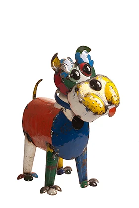 Small Ralph is100 percent derived from 44 gallon oil drums, and it is part of an eclectic range of handmade sculptures that are full of fun and character and give a fresh new look to recycling. The dogs and cats bring an extra level of detail to the ee-i-ee-i-o collections, which feature farm animals, and are suited in a variety of places inside and outside the home.