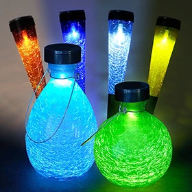Add romance to outdoor living by extending dimming sunlight through the evening with gem-like Solar Sparkle Cones and Crackle Vases by ACHLA Designs®. No candle or electrical wiring required; each is fitted with a solar collector and long lasting bulb which automatically activates after sundown. Available in packs of individual colors or assortments.