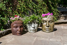 Lightweight fabric pots attach to durable concrete art to create beautiful, portable planters. Customers can plant multiple detachable fabric Swap-a-Pots with plants that bloom at different times and display the most attractive in the Swap-a-Pot planter. Roots are naturally air-pruned once they reach the porous fabric, encouraging them to branch out with more fibrous feeder roots resulting in a healthier plant. Oxygen rich aeration is healthy for roots and beneficial micro-organisms.